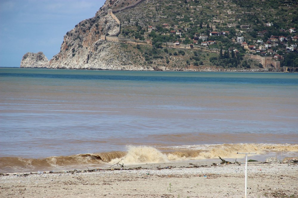 İlçede metrekareye 120 kilogram düşen yağmur nedeniyle yüksek kesimlerden gelen çamurlu sular derelerle buluşup denize taşındı.