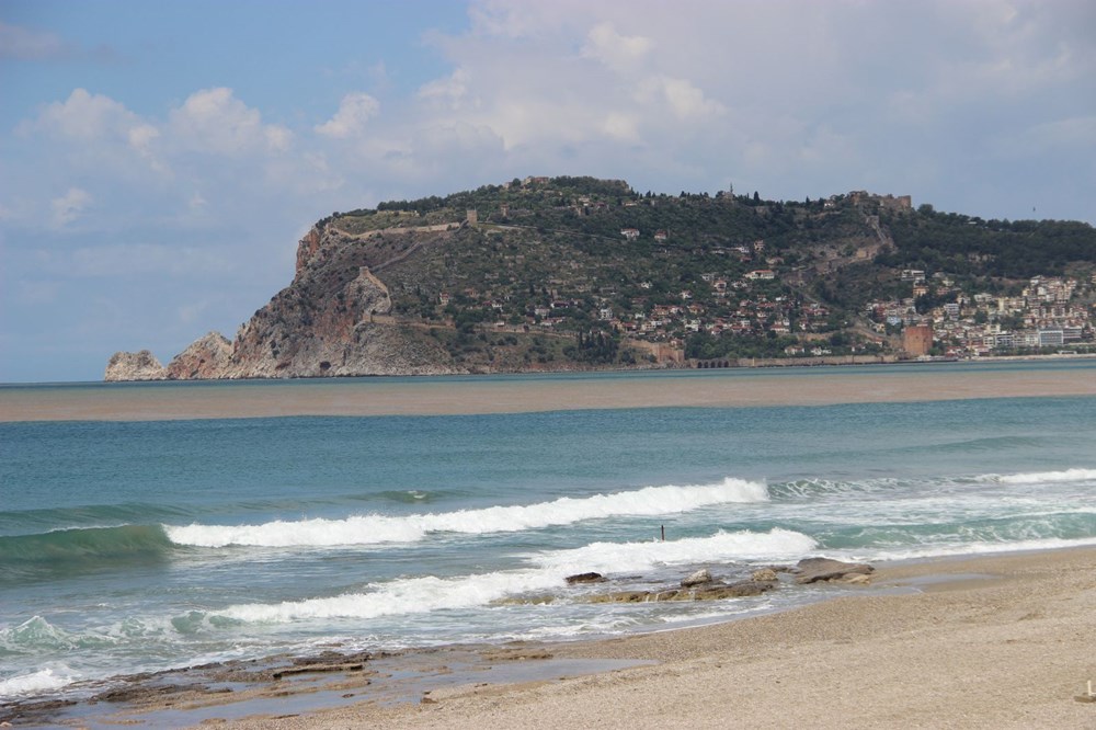 Antalya'nın Alanya ilçesinde dün akşam başlayan sağanak yağış nedeniyle dereler taştı. Suyla taşınan çamur nedeniyle deniz kahverengiye büründü.