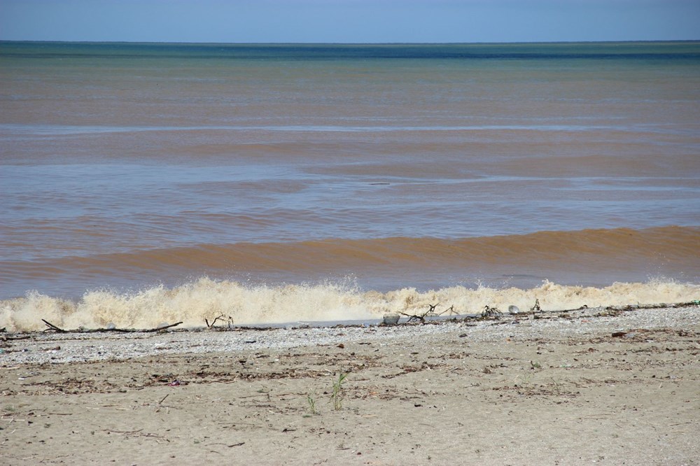 Denizin kıyı kesimlerinin kahverengi bir renk alması ilginç bir görüntü oluşturdu.
