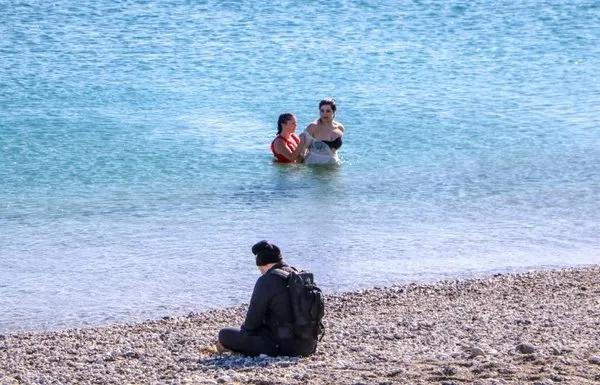 Sahilde kimileri yürüyüş yaparken, kimileri ise zirvesinde kar olan Toros Dağları'nın manzarası eşliğinde denize girdi. Deniz suyu sıcaklığı hava sıcaklığından yüksek olunca, denize girenler üşümemek için koşarak suyla buluşmayı tercih etti.