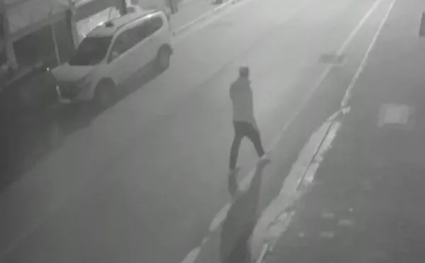 Görüntülerde, sokakta gezinen kimliği belirsiz bir kişinin araca yanaşıp demir çubukla saldırdığı anlar yer aldı.