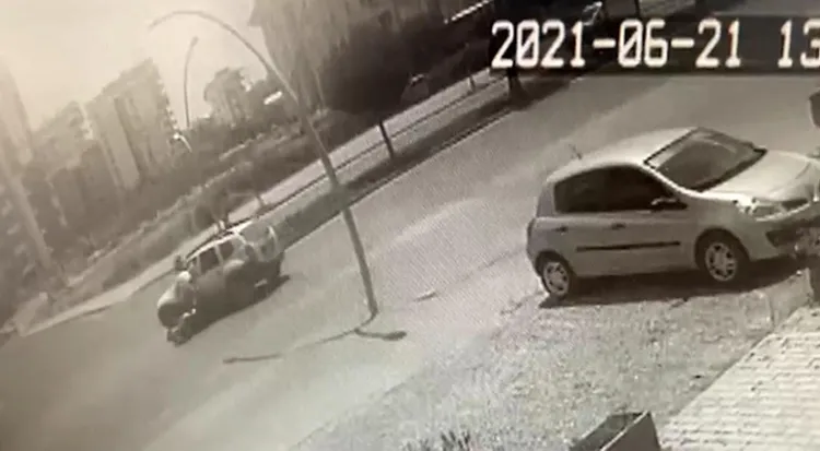 Çevredeki bir işyerinin güvenlik kamerasına yansıyan kazada, tali yoldan çıkan cipin kavşağa girmek için bir süre ters yönde ilerlediği, sol şeritte ilerleyen motosikletin kavşakta cipe çarptığı görülüyor.