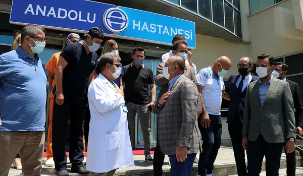 Bakan Çavuşoğlu'nu hastane girişinde kulüp Başkanı Hasan Çavuşoğlu ve Juventus'ta oynayan milli futbolcu Merih Demiral karşıladı.